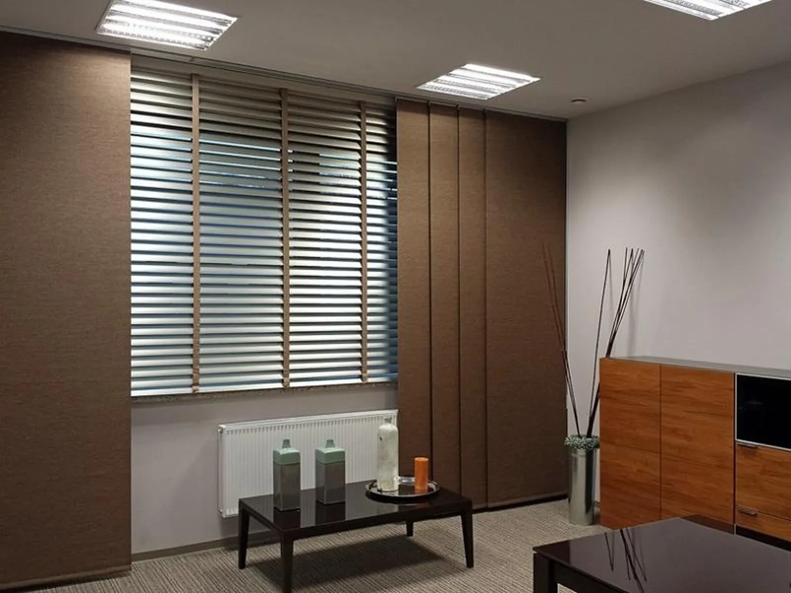 pozostávajú z garníže z vysoko kvalitného bieleho PVC s drážkami, v ktorých sa pohybujú vozíky. Ovládanie je ručné - ťahaním za látku.