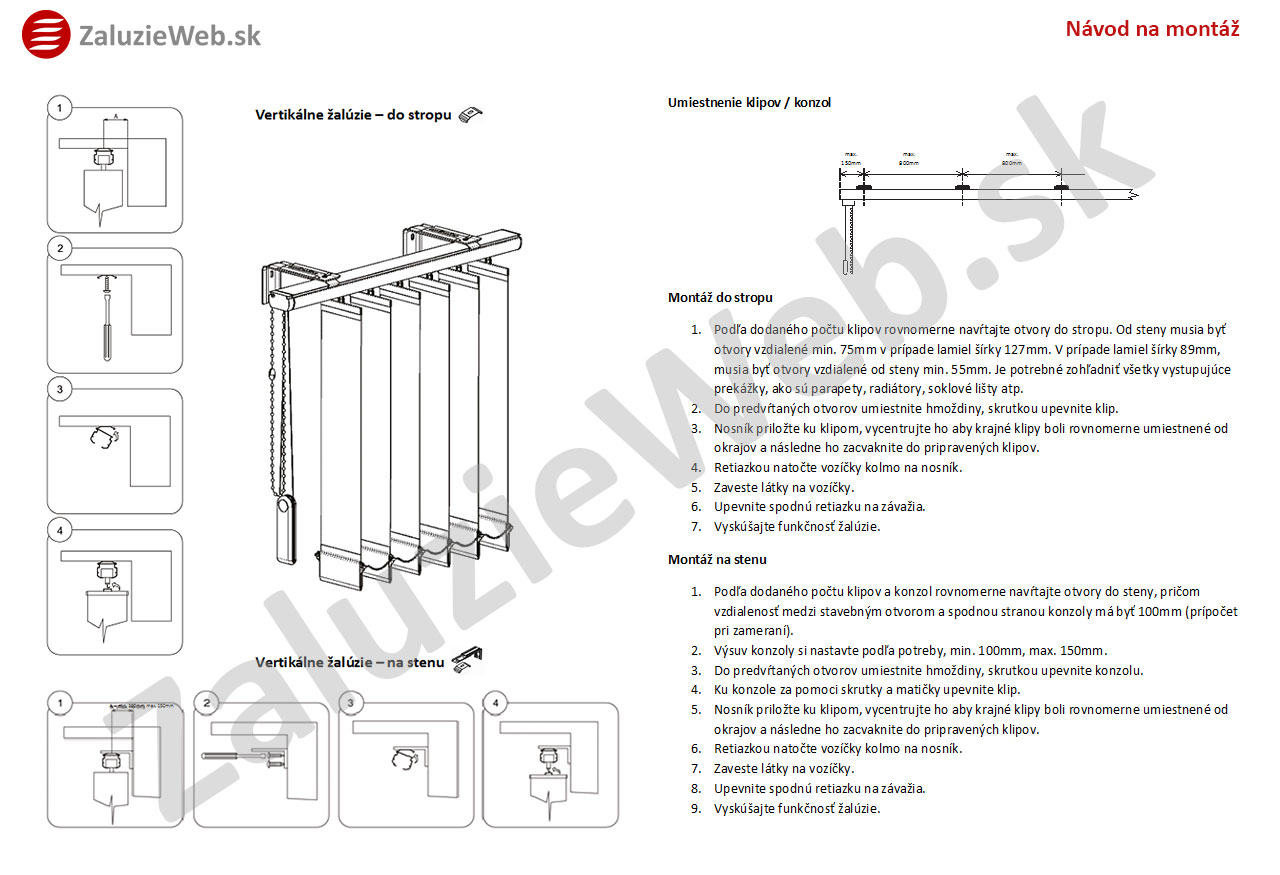 Nosník pre vertikálne žalúzie. Vyrábaný na mieru.