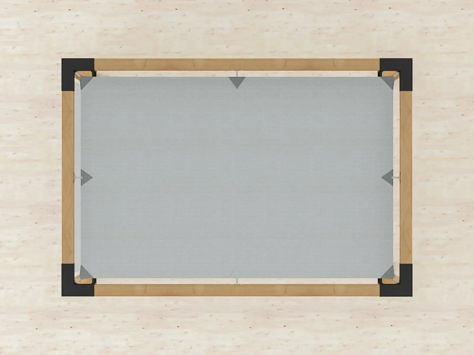 - Podľa roztiahnutej plachty v miestach upínacích praciek na plachte priskrutkujte na hranol priame upínače plachty.